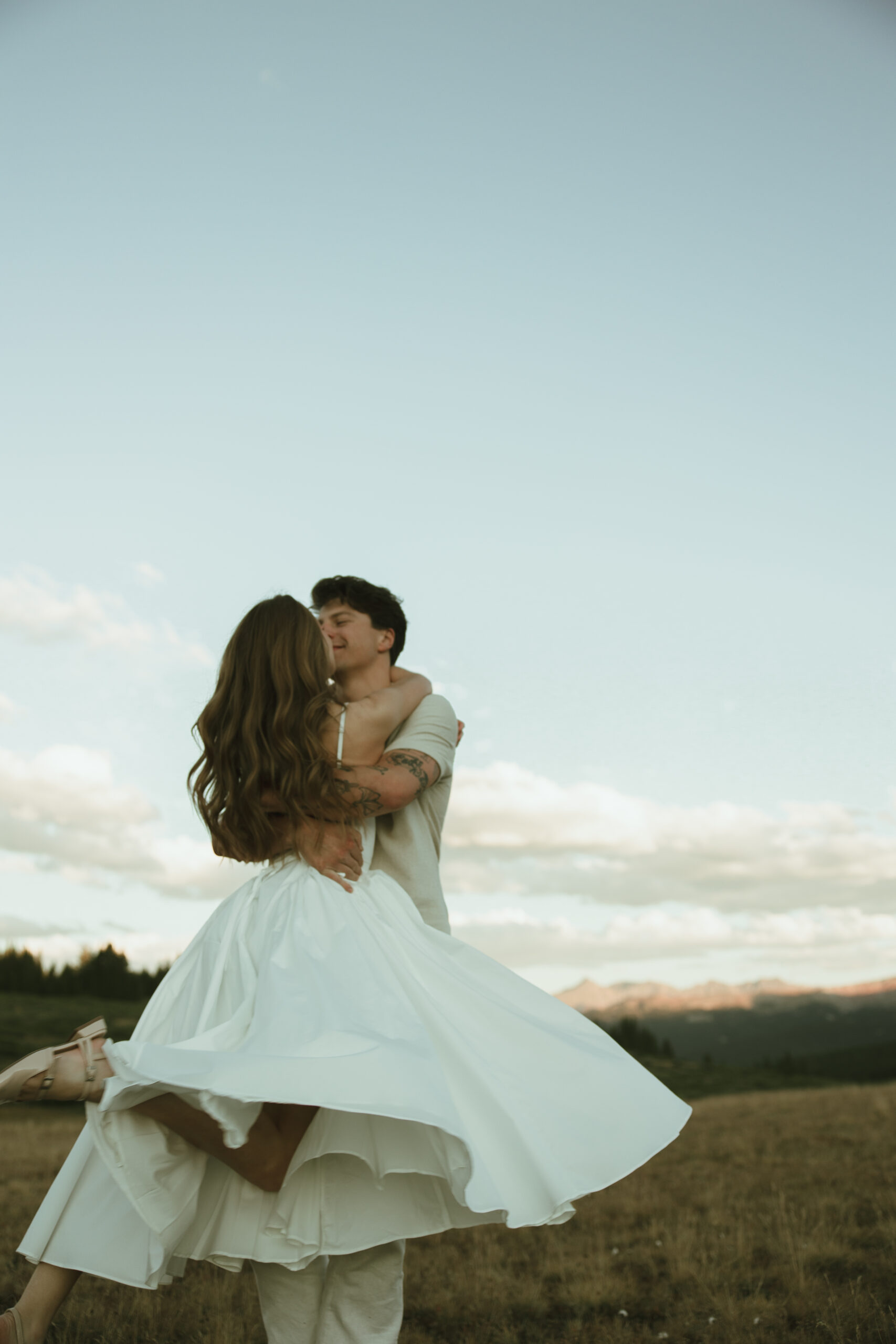 When Connor and Tess reached out about their engagement photos, they knew one thing for sure—they wanted the mountains. Their story already had deep roots there: Connor had proposed after an epic 19-mile hike, so it only felt right to honor that chapter of their love with a session surrounded by peaks and alpine air.