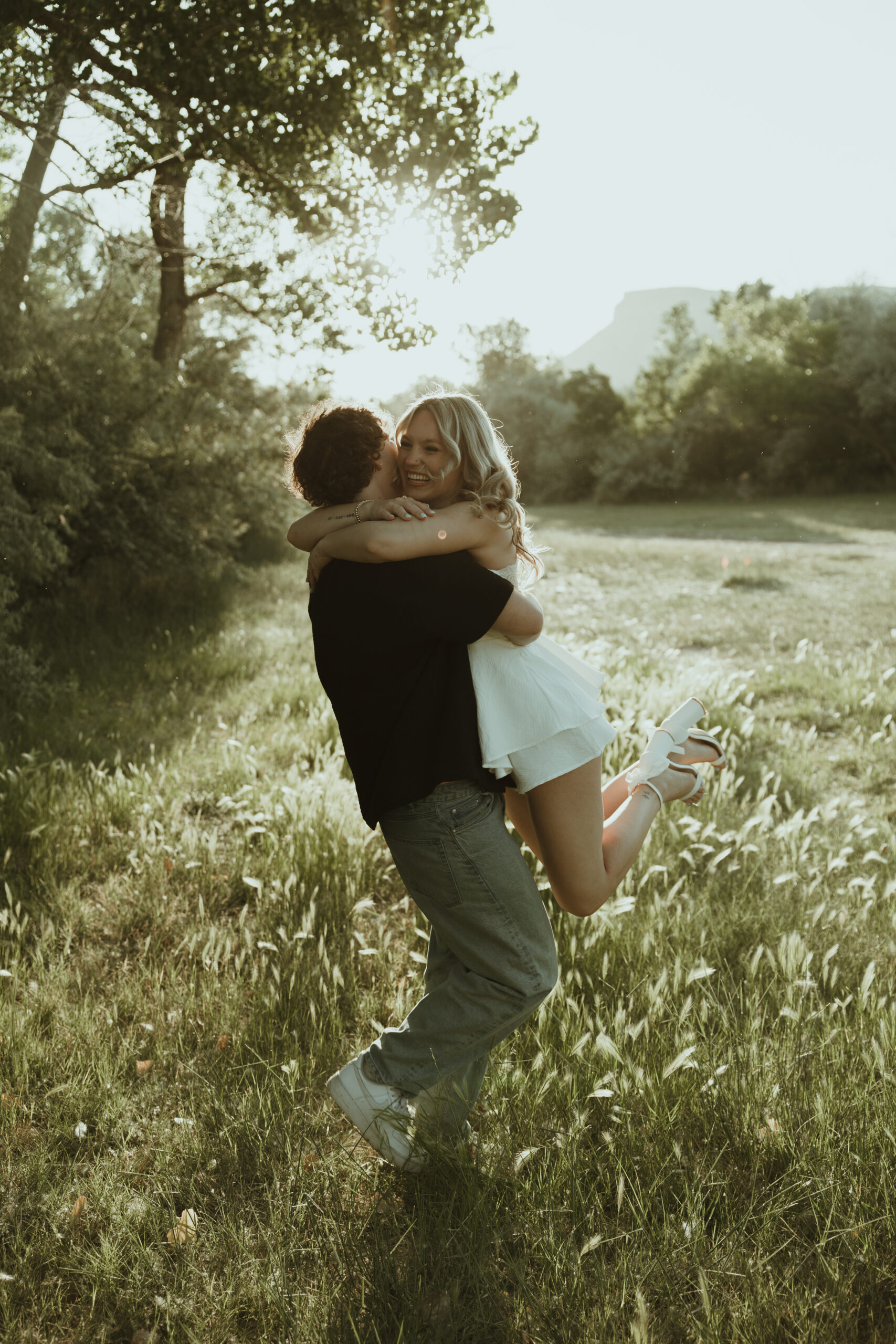 There’s something so special about celebrating a one-year dating anniversary. It’s that sweet season of being young, in love, and soaking up every little moment together. For this couple, we marked their anniversary with a photo session at River Bend Park in Grand Junction, Colorado—a stunning spot filled with open grassy fields and golden light.