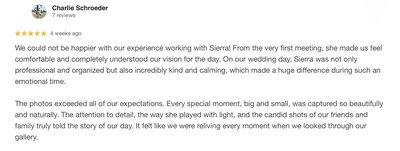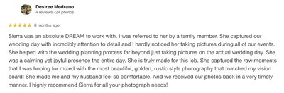 Where do I even begin?! Working with Sierra was nothing less than a dream come true. I was hoping to capture our new family of four in a way that felt timeless, classic, and candid; and Sierra accomplished that in a way that still leaves me in awe. The photos are deeply touching, and so true to who our family is. From the gorgeous location (which she found specifically for our shoot) to her patient guidance, Sierra was able to piece every little detail together and weave the still photos into a breathtaking story of our family. I feel so much gratitude for her gifts. Now we have keepsakes to treasure for a lifetime. I would urge anyone and everyone to book with her!